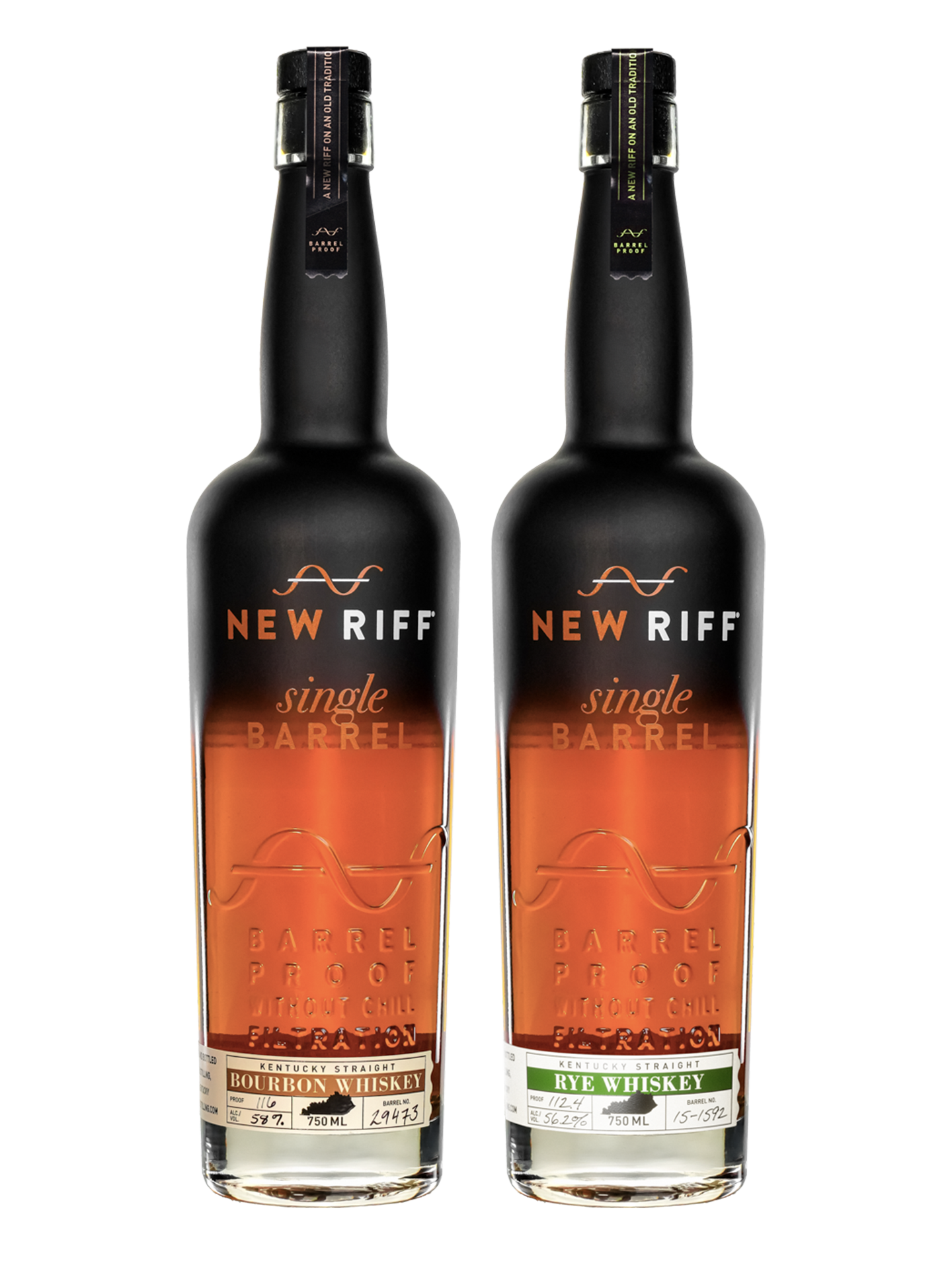 A Two-pack featuring award winning New Riff Single Barrel Bourbon and Rye. New Riff Single Barrel Bourbon offers big and spicy flavors, creating a robust and fulsome taste from start to finish. Accompanied by New Riff Single Barrel Rye, boasting intense and focused spicy flavors, crafted to provide the same level of robustness and complex flavors found in the Bourbon. Each single barrel of both Bourbon and Rye has been tasted and approved by New Riff's production panel, ensuring that every bottle delivers a unique and exceptional flavor profile. Both bottles are unfiltered and come barrel strength, without chill filtration, allowing all the character of the barrel to shine through in the glass.